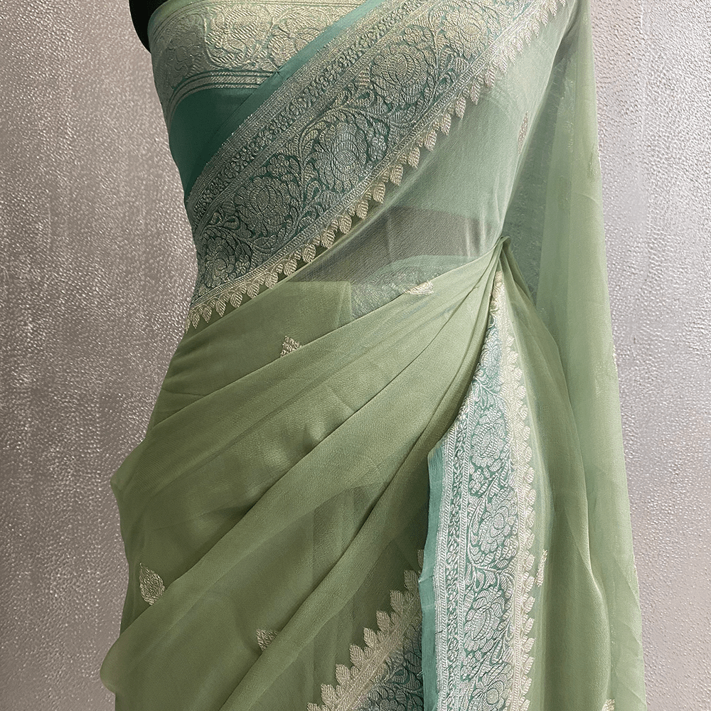 Handwoven Kadhuwa Pure Georgett Silk Banarsi Saree Color Pastle Green