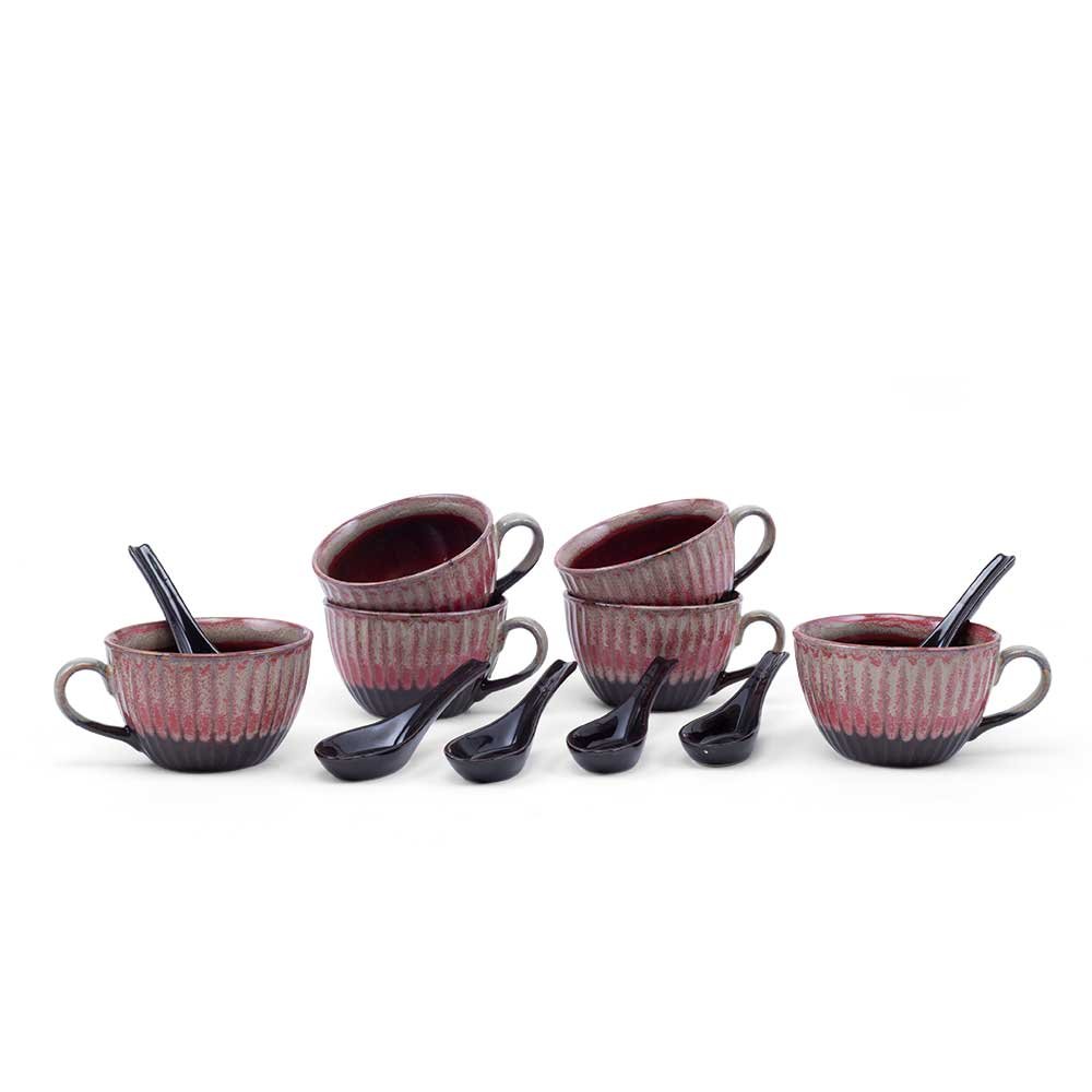 Red Color Blast Soup Bowl With Spoon Set of 2