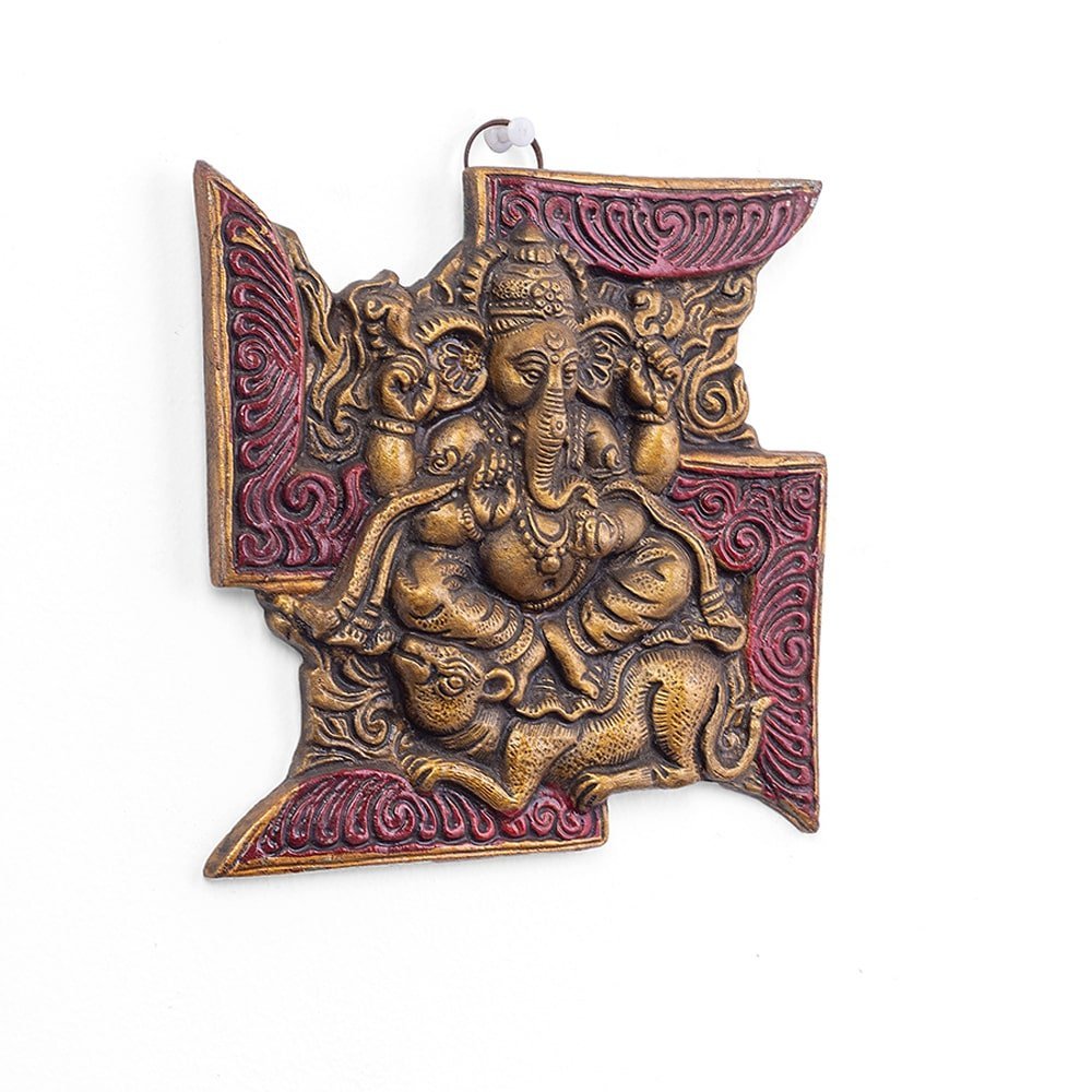 This striking wall décor combines two important hindu symbols-swastika and lord ganesha-in a harmonious and visually appealing design. The overall composition forms a square shape, ideal for adorning walls in homes, offices, or places of worship.