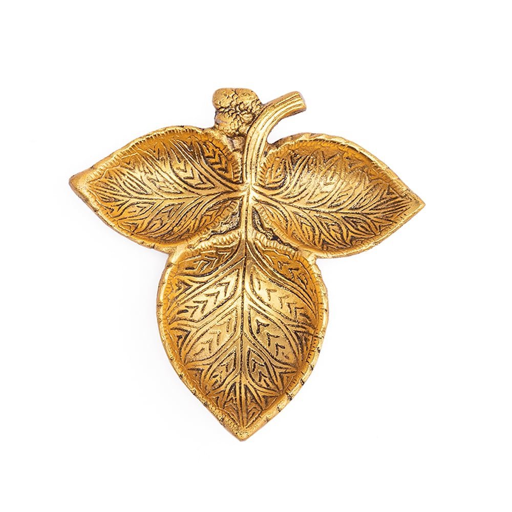 This tray’s versatility knows no bounds. Its three distinct sections allow for the creative presentation of a variety of items like dry fruits, appetizers, desserts, etc. Despite its artistic appearance, this tray is designed with practicality in mind. The smooth, seamless surface is easy to clean, requiring just a simple wipe to maintain its luster. Embrace the luxury, functionality, and artistry of our golden three-leaf serving tray.
