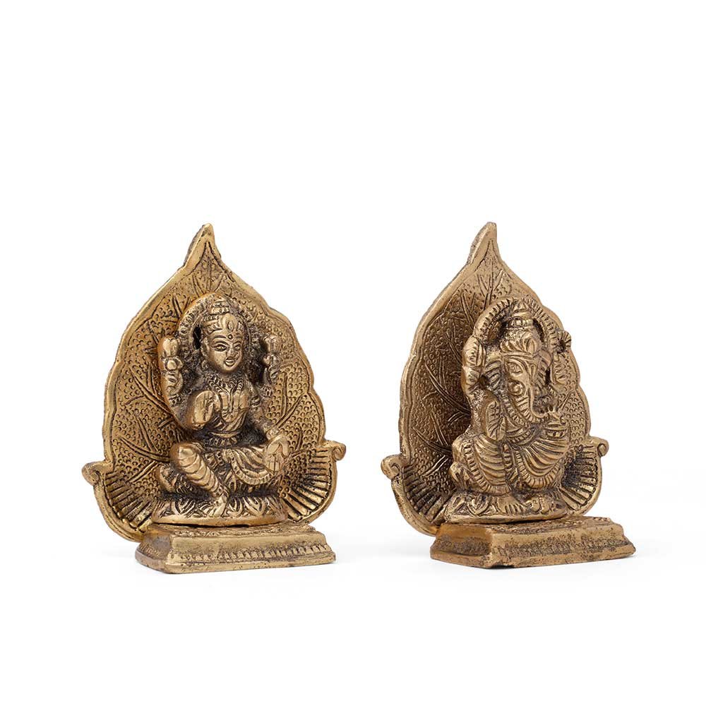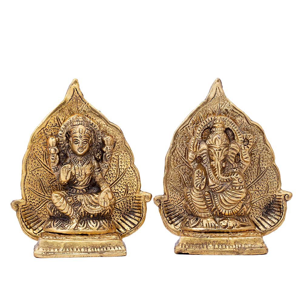 This exquisitely crafted golden figurine captures the divine essence of two of most revered deities: Lakshmi, the goddess of wealth and prosperity, and Ganesha, the remover of obstacles and the god of beginnings. The figurine, meticulously fashioned from high-quality lustrous material, reflects both the intricate artistry and spiritual significance associated with these divine figures.